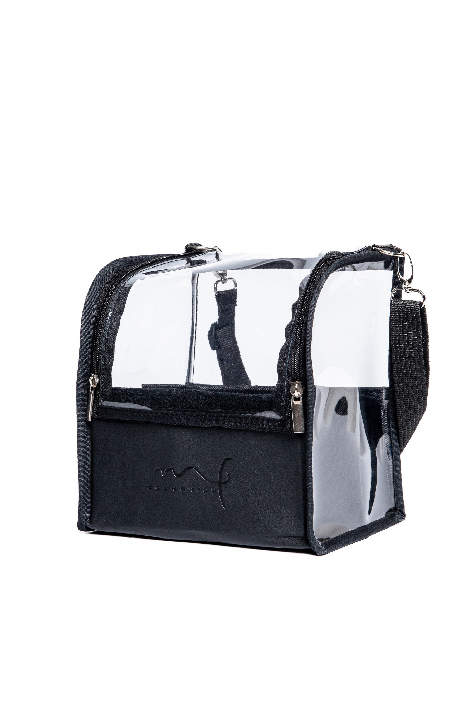 Maletín de diseño transparente, organiza y transporta brochas, cosmético y accesorios. Incluye divisiones que se ajustan al tamaño que se necesite.