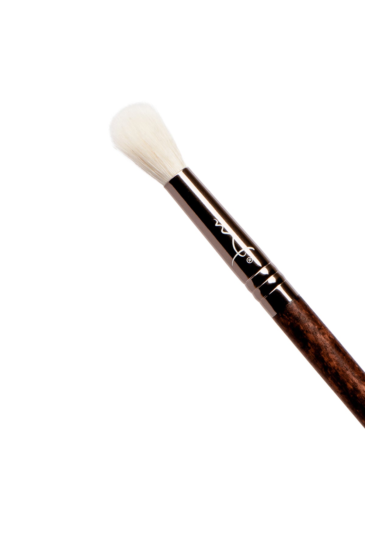 Brocha de fibras suaves con corte angular. Aplica, difumina productos en polvo en ojos y nariz.