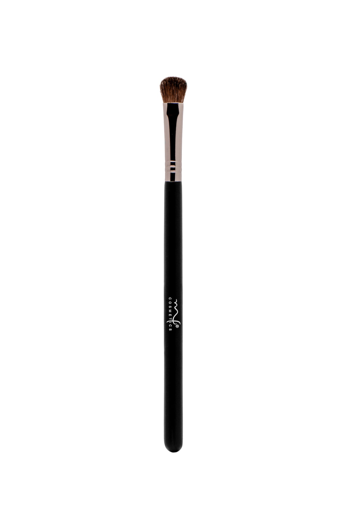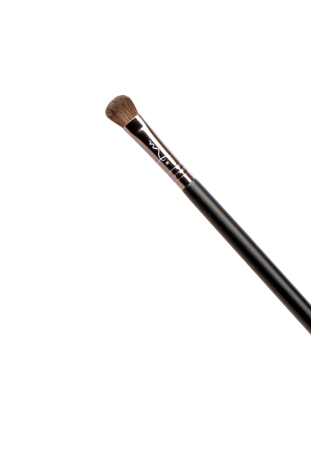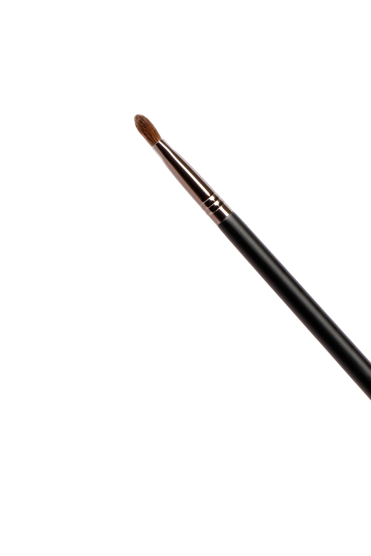 Brocha de fibras suaves, plana con punta redonda. Deposita productos en polvo de manera concentrada en los parpados.