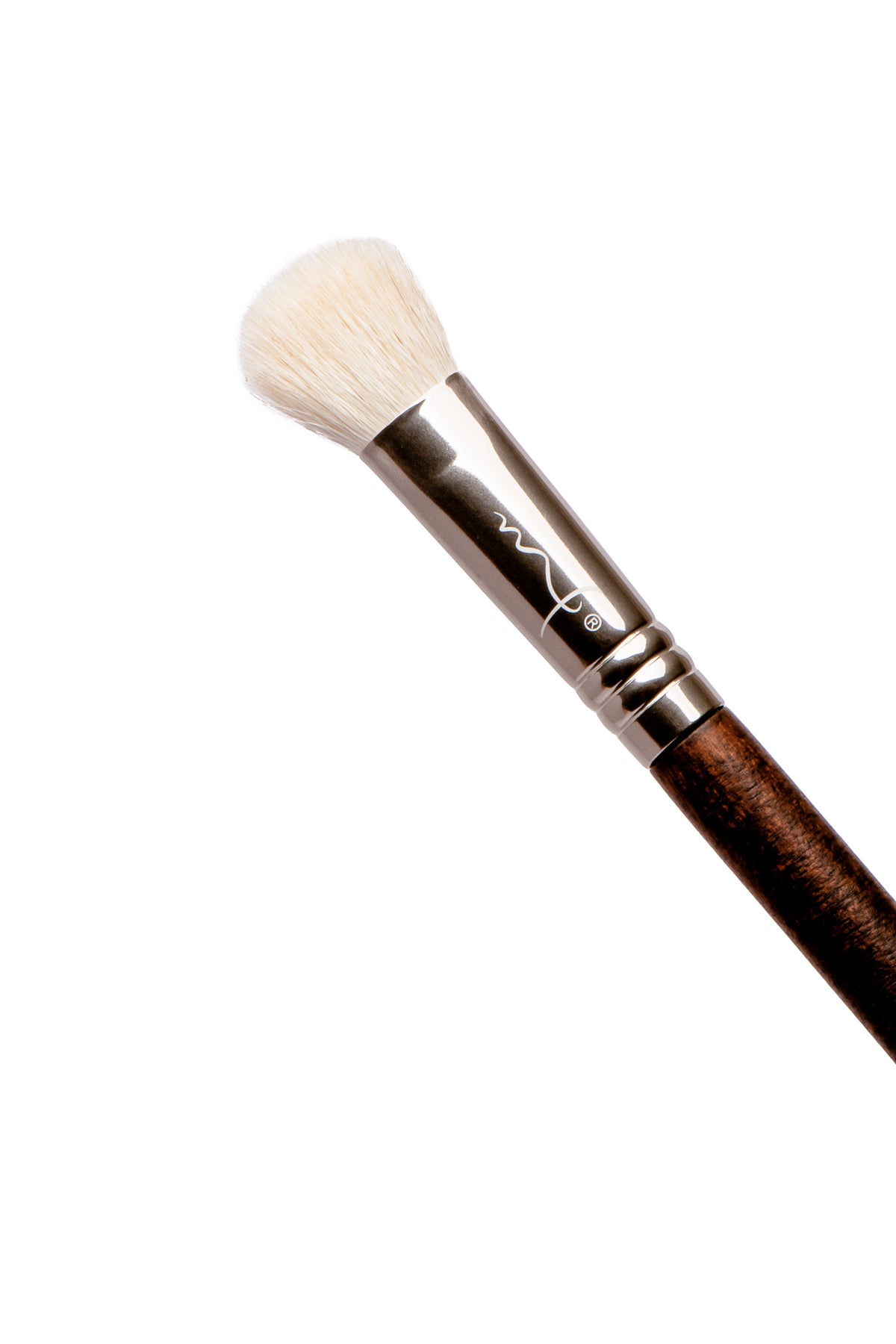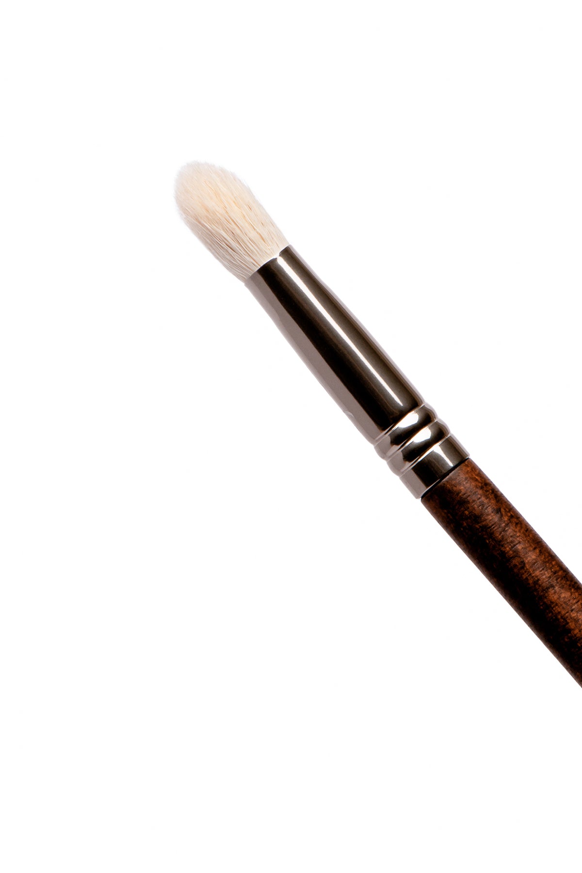 Brocha de fibras suaves de forma plana con punta redonda. Deposita productos en polvo de manera concentrada en los parpados.