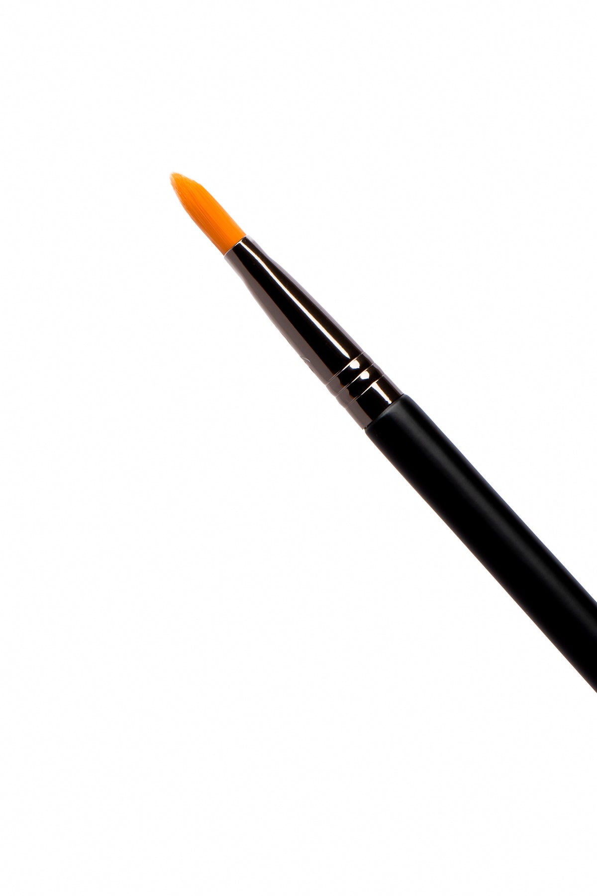 Brocha plana de fibras rígidas con punta redonda. Aplica productos líquidos y en crema de manera concentrada.