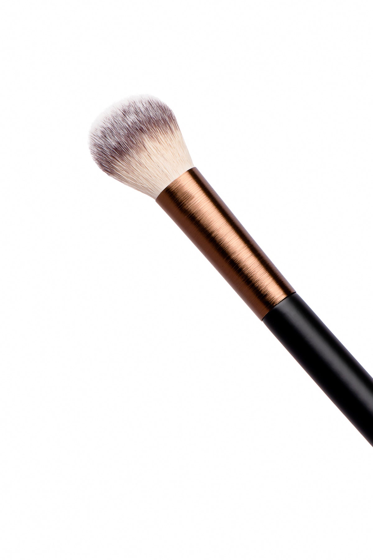 Precio unitario porBrocha plana de fibras de NYLON suave con punta curva. Aplica y difumina productos en polvo en el rostro.