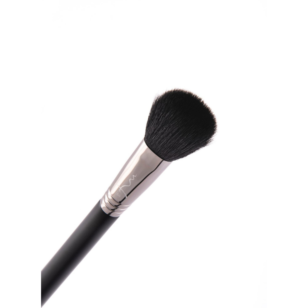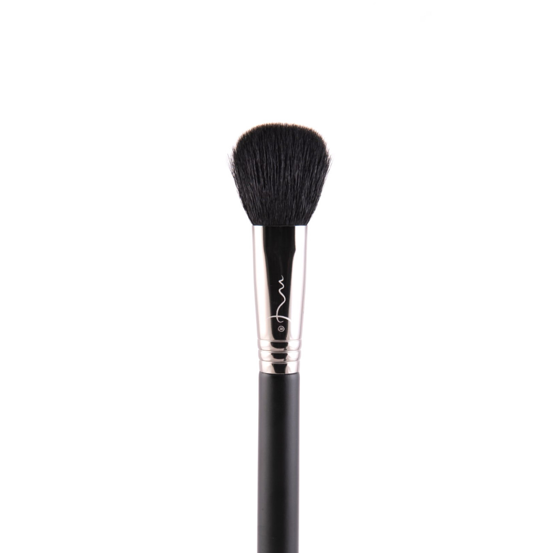 Brocha de fibras suaves con punta redonda. Aplica y difumina productos en crema y polvo en el rostro. Aportando cobertura media.