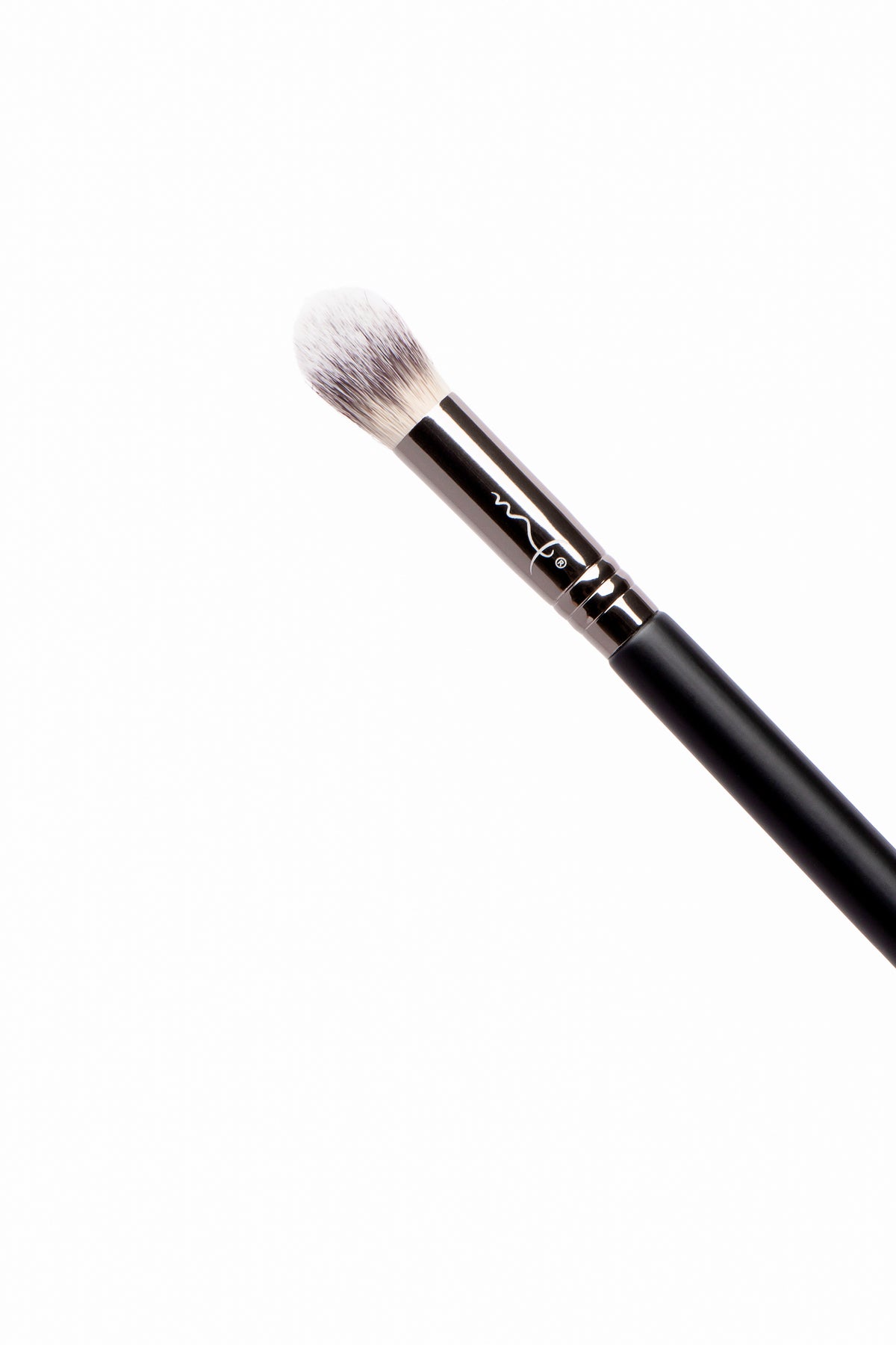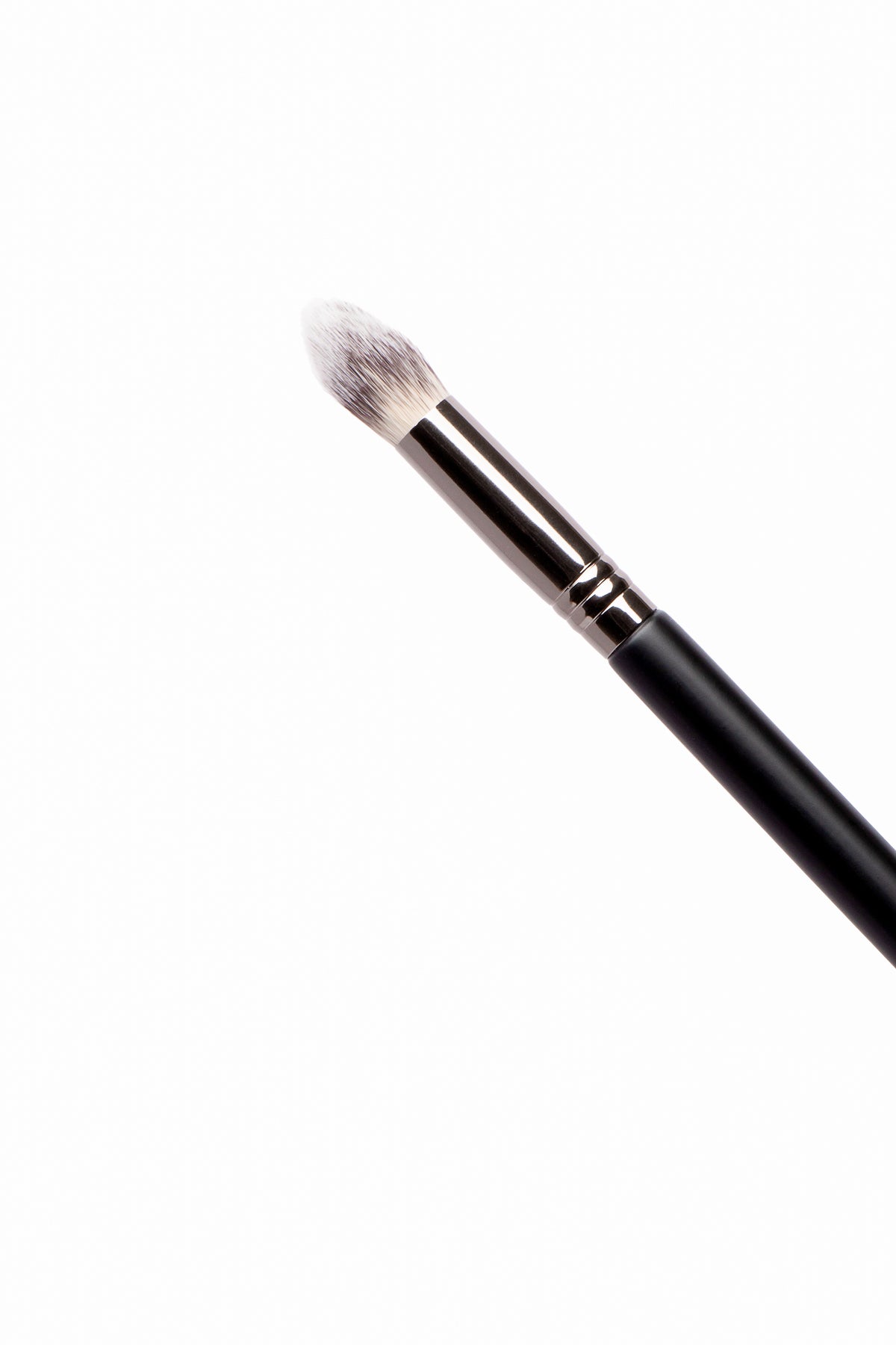 Brocha de fibras suaves con ligera punta. Difumina productos en crema y polvo de manera precisa.