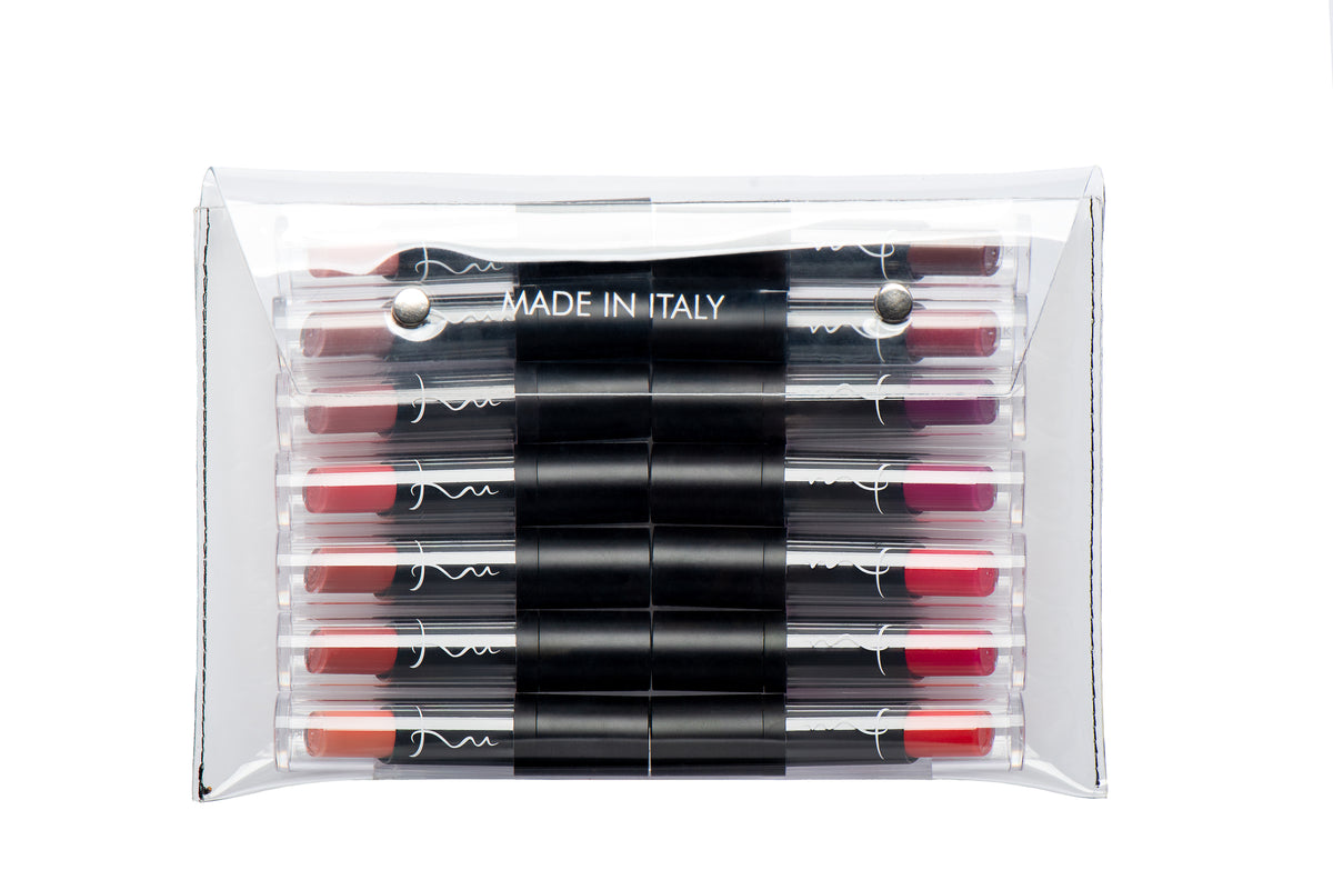 Coleccion de 14 labial líquido ultra mate indeleble, su textura sedosa brinda un color intenso en la primera aplicación con una sensacion ligera en los labios que dura por horas.
