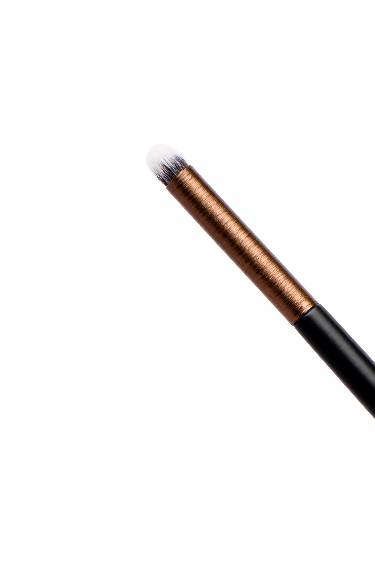 Brocha de fibra sintética mini cónica con punta. Aplica y difumnia productos en crema y polvo de manera concentrada en ojos y rosto.