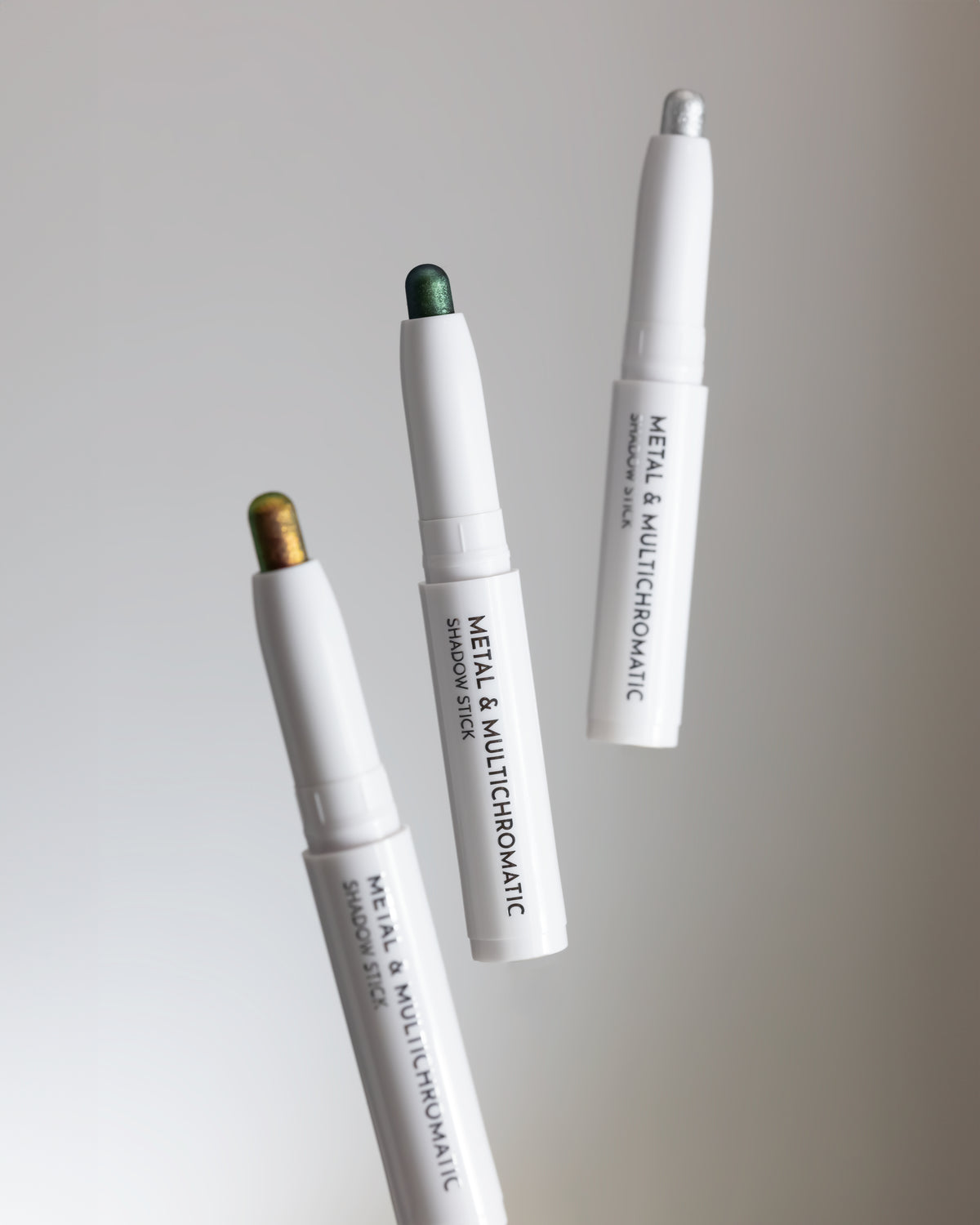 Sombra en barra de textura cremosa y de acabado metalico y/o multichromatico. Por su formula, la sombra se desliza y se difumina de manera suave sobre la piel, aportando un color sólido con destello que al momento de secar perdura su efecto durante todo el día.