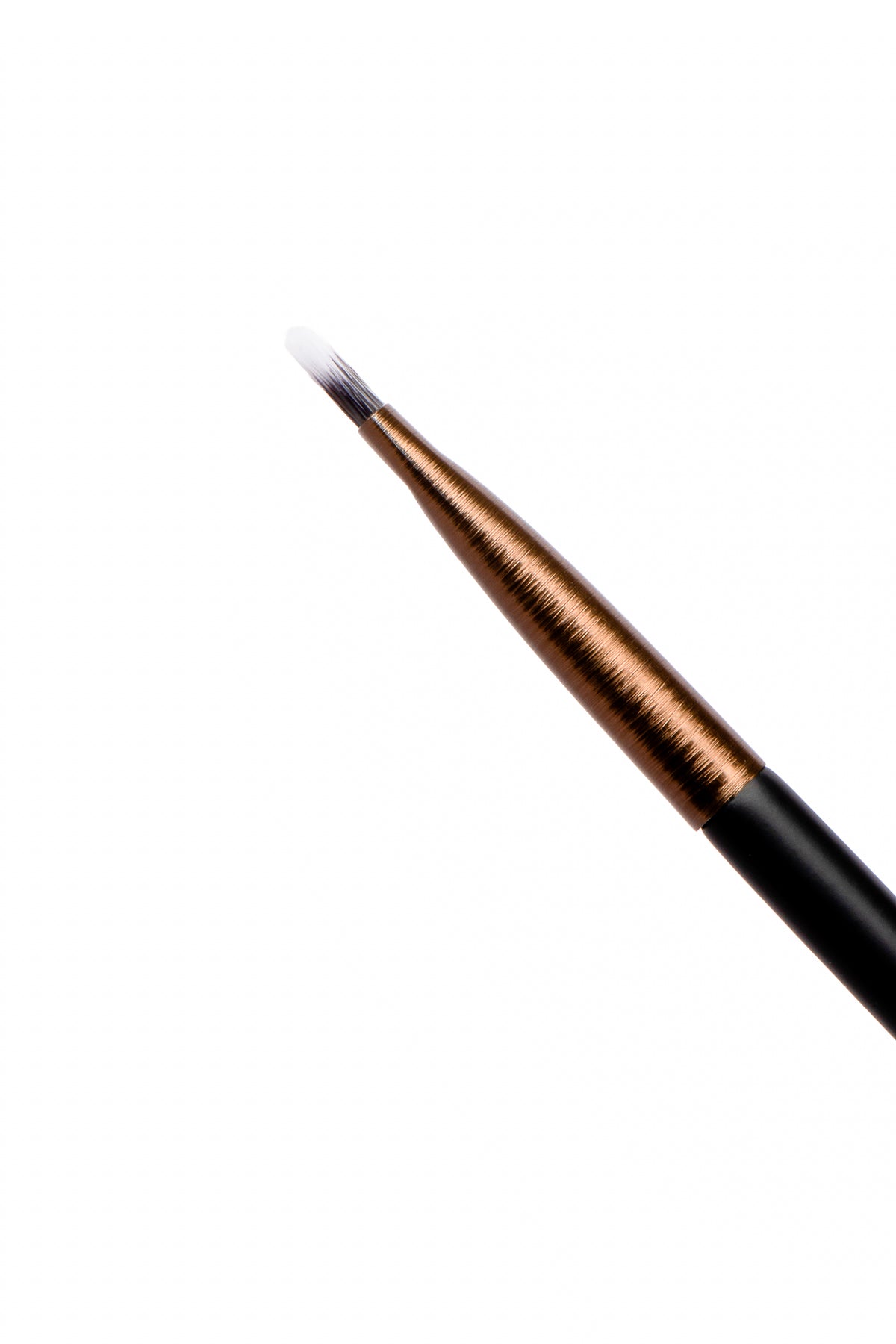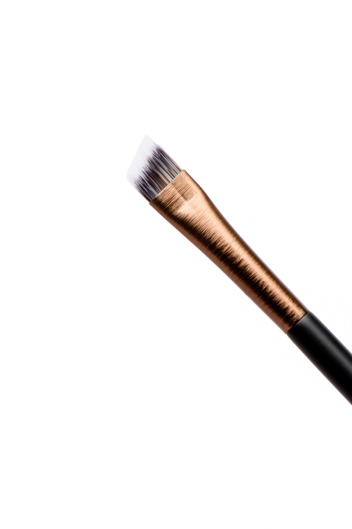 Brocha pequeña de fibras cortas y firmes con corte angular. Aplica de manera uniforme y precisa productos en polvo, crema o gel para crear trazos perfectos.