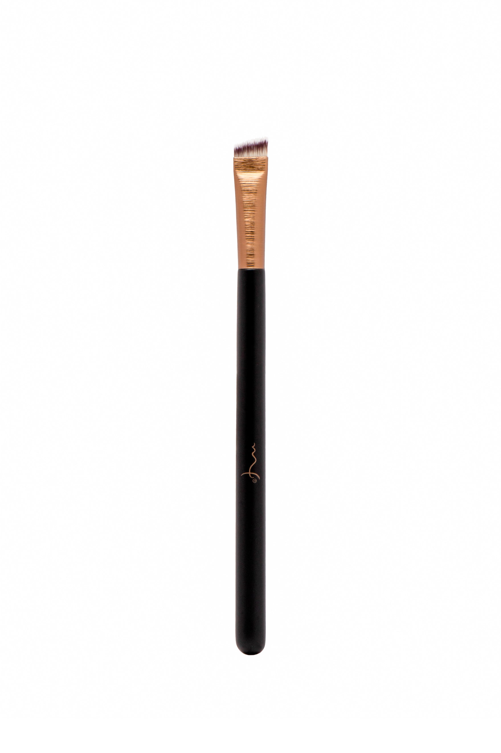 Brocha de fibras cortas y firmes con corte angular. Aplica de manera uniforme y precisa productos en polvo, crema o gel para crear trazos perfectos.