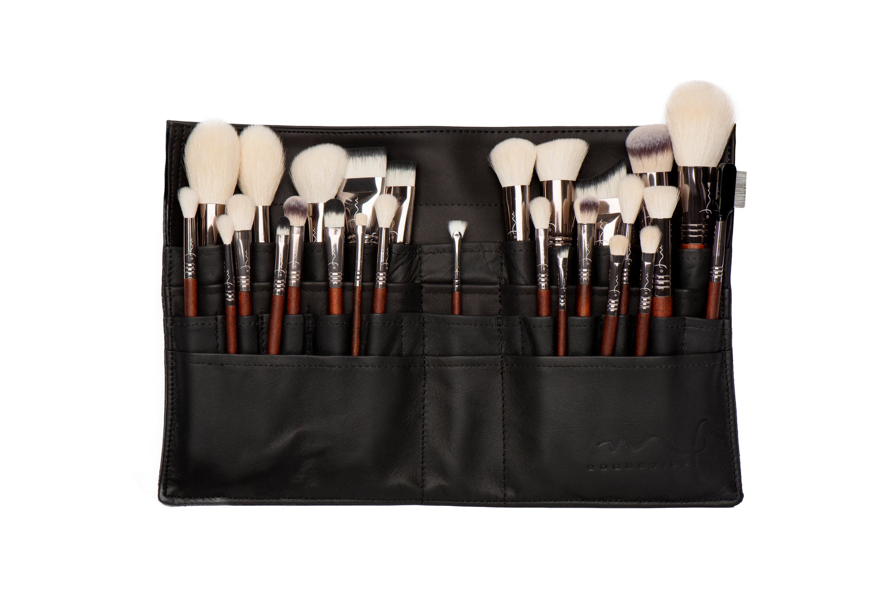 Set de 27 brochas profesionales, disfruta de un maquillaje completo con las fibras Sensitive de MF Cosmetics, su cabello natural de cabra aplican el cosmetico de manera suave y uniforme.