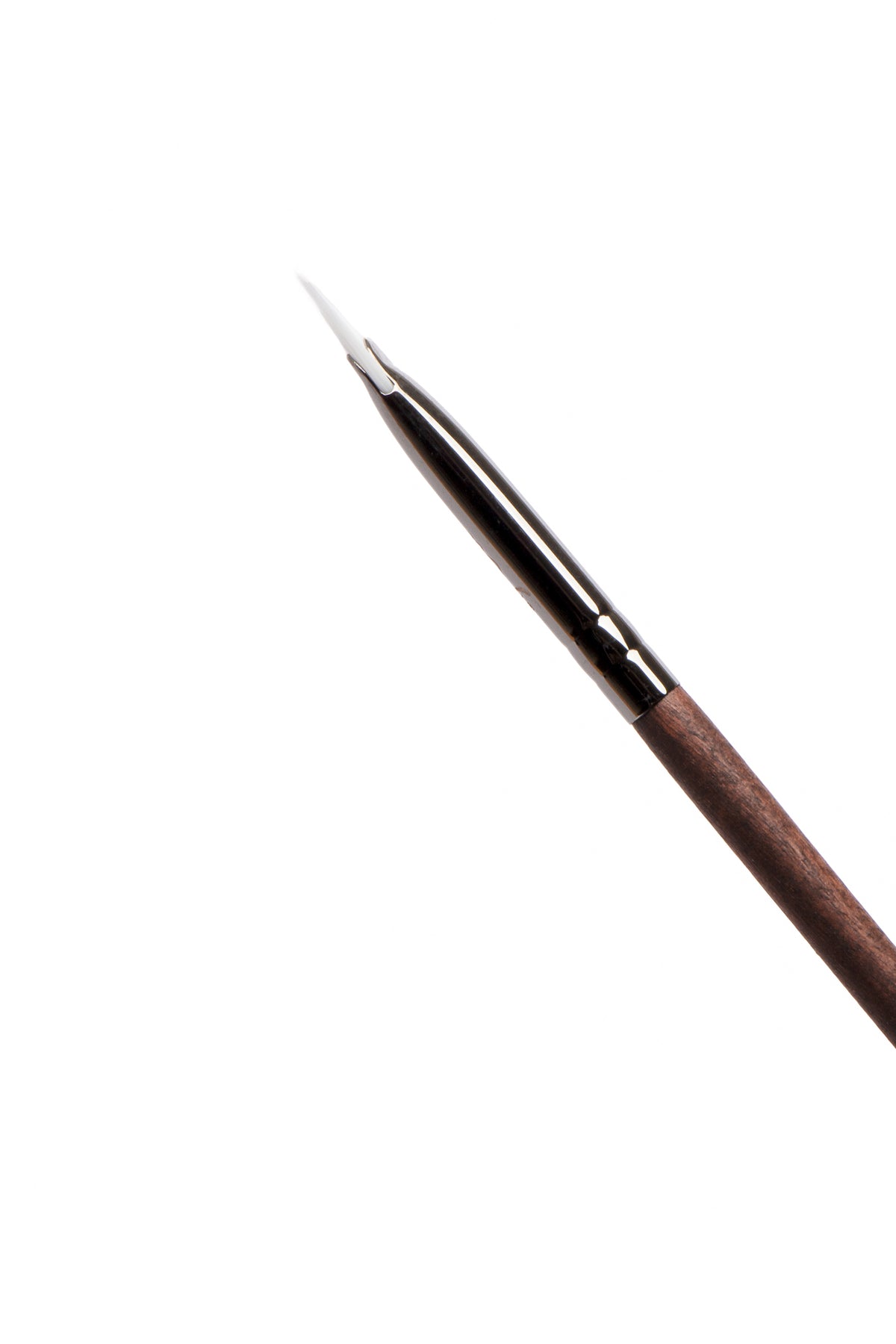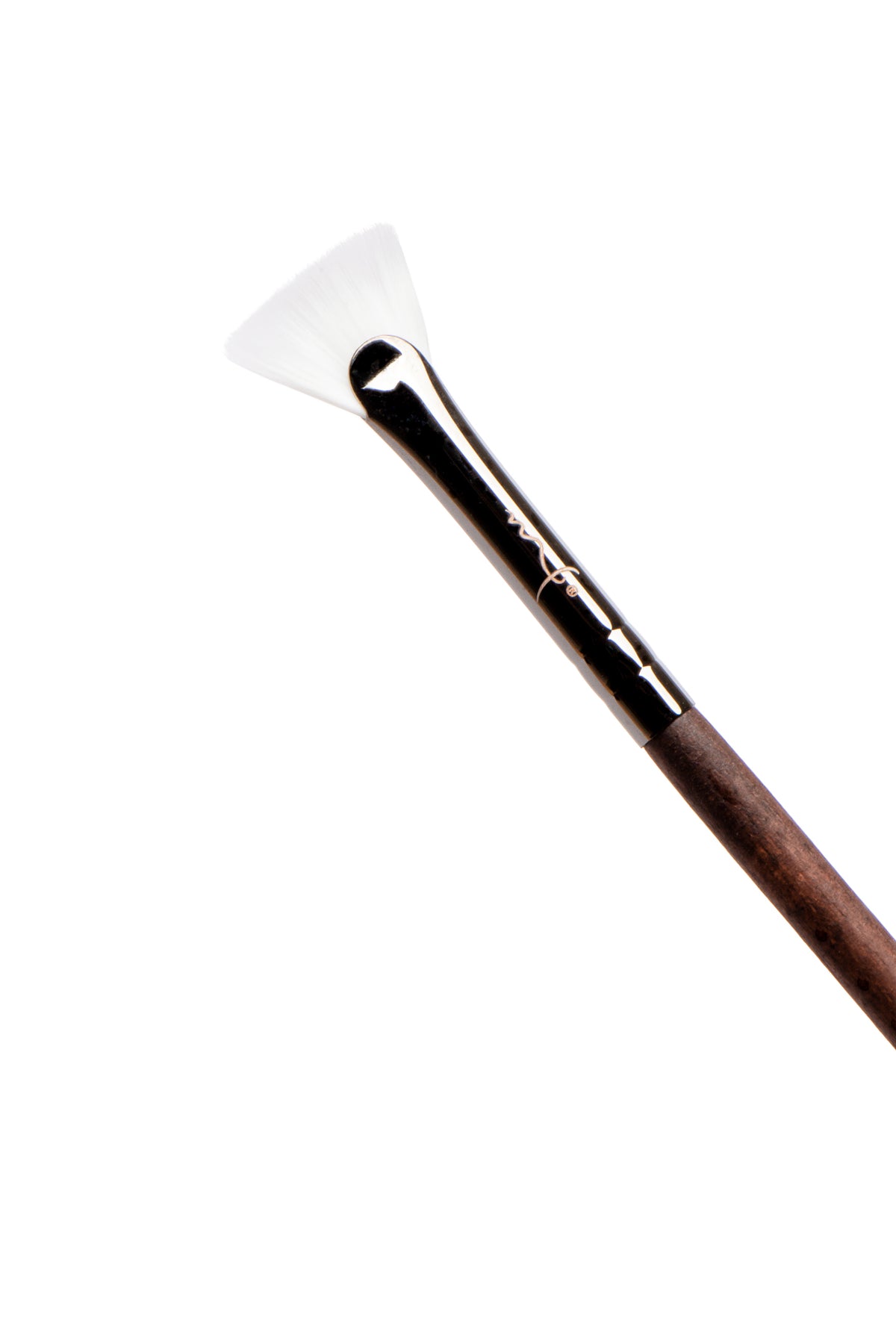 Brocha en forma de abanico pequeña. Aplica y distribuye mascara a lo largo de todas las pestañas de manera uniforme, disminuye los grumos dejando un acabado perfecto.